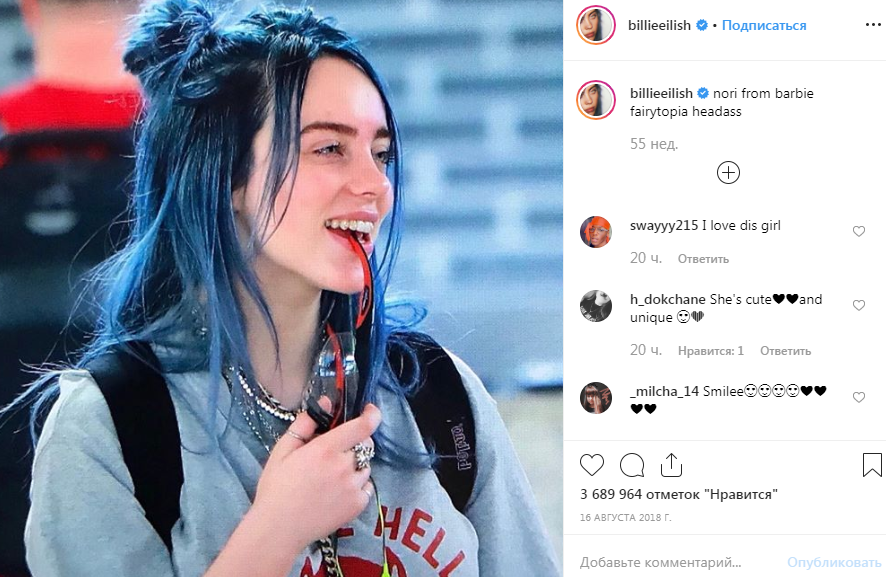 Билли Айлиш – знаменитая американская певица. Девушке всего 17 лет, но она успела покорить все возможные хит-парады.