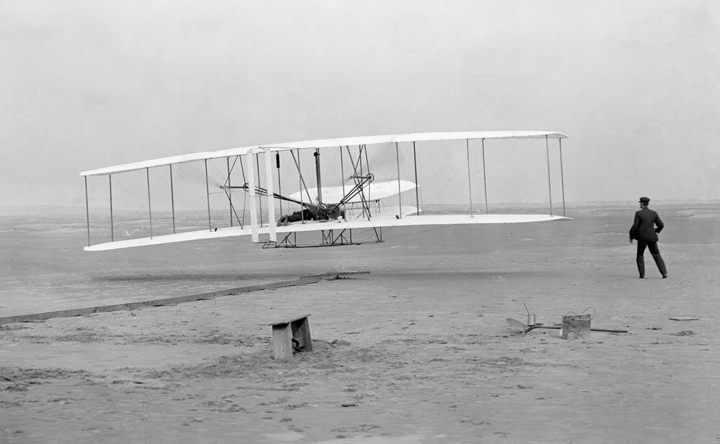Первая попытка взлета была предпринята 14 декабря 1903 г., но закончилась неудачей по причине мелких технических ошибок. Спустя 3 дня братья Райт совершили 2 полета, сумев разогнать самолет до 43 км/ч. Первый полет выполнил Орвилл, пролетев 36,5 м.