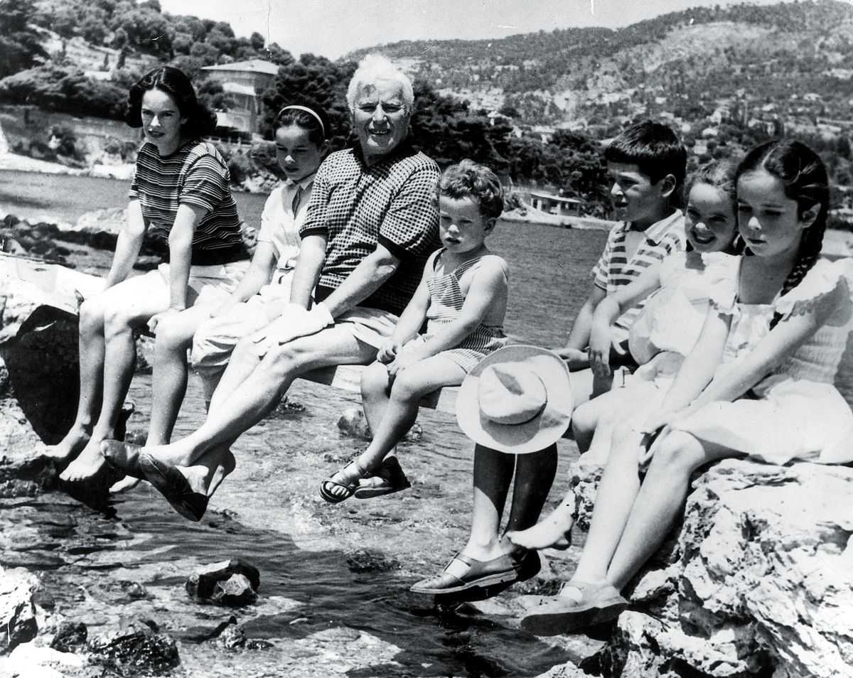 Чарли Чаплин на отдыхе в Сен-Кап-Ферра со своей семьей, 15 июля 1957 г.