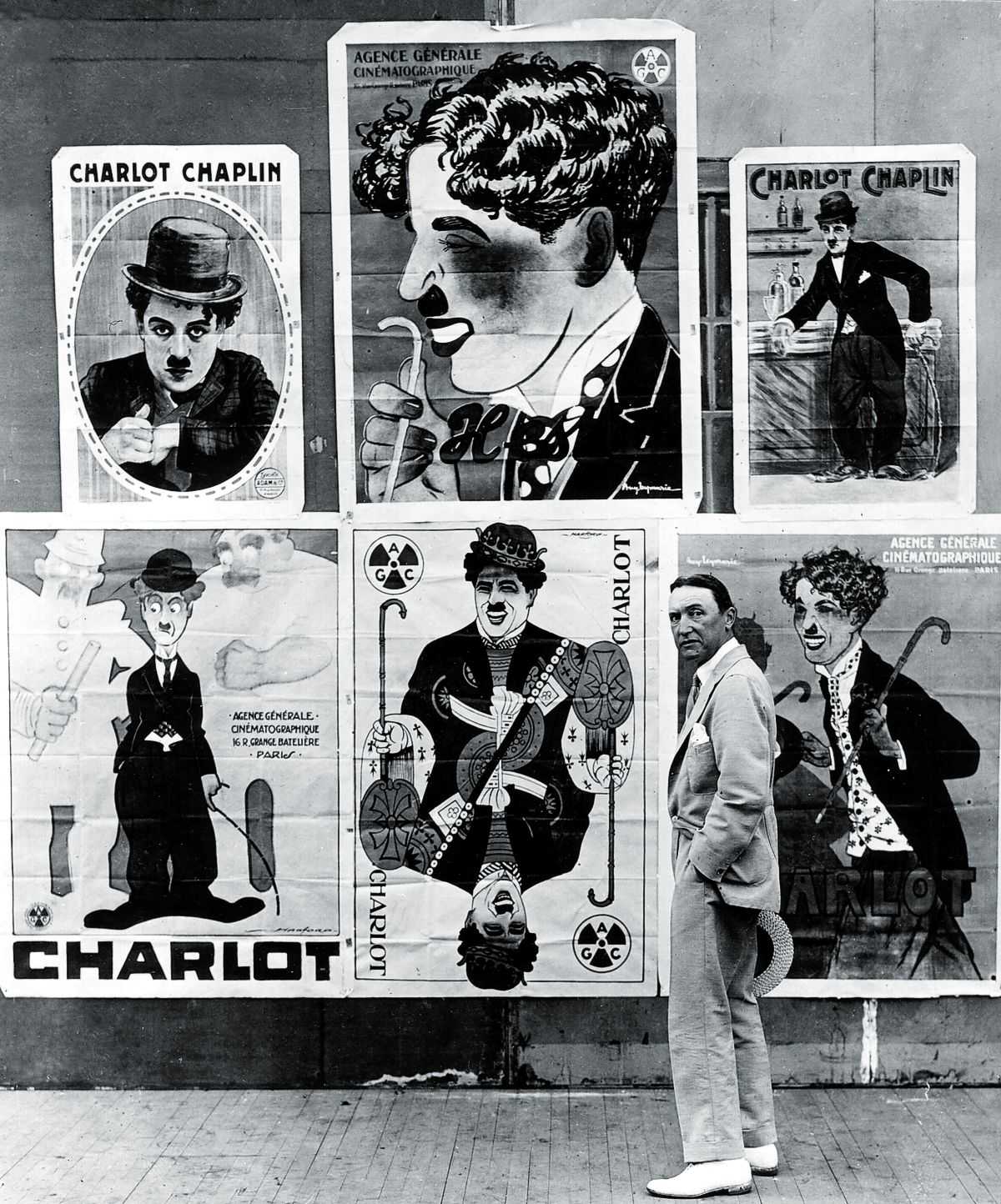 Альфред Ривз с французскими плакатами, рекламирующими фильмы Чарли Чаплина, 1925 г.