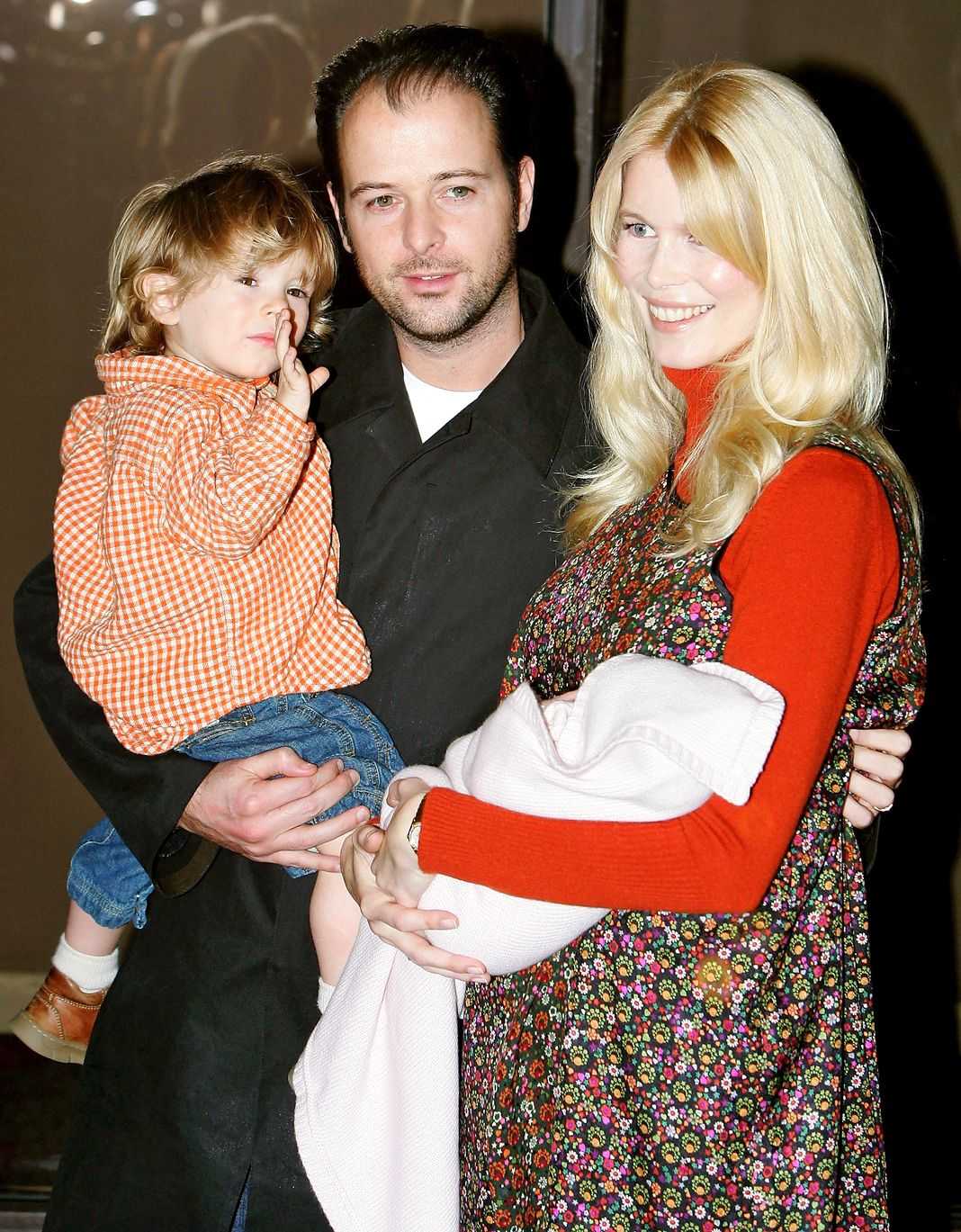 Бывшая супермодель Клаудия Шиффер на выписке из роддома Портленда с новорожденной дочерью Клементиной, мужем Мэтью Воном и сыном Каспаром, 17 ноября 2004 г.