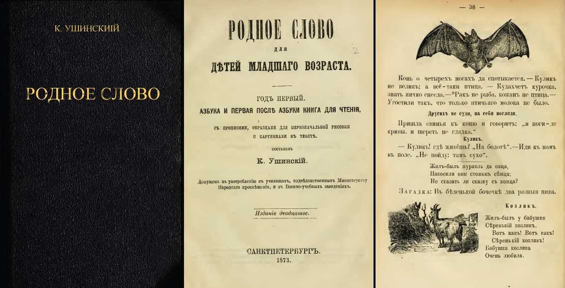 И в это же время педагог создает для детей поучительные книги — «Родное слово» и «Детский мир». Это были познавательные и увлекательные учебники. Дети, изучали материал с удовольствием, им все было понятно. Особенно много было рассказов для ребят, начинающих читать. Он показал им, каким бывает интересным окружающий мир.