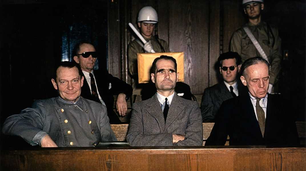 Рудольф Гесс и Иоахим фон Риббентроп на скамье подсудимых