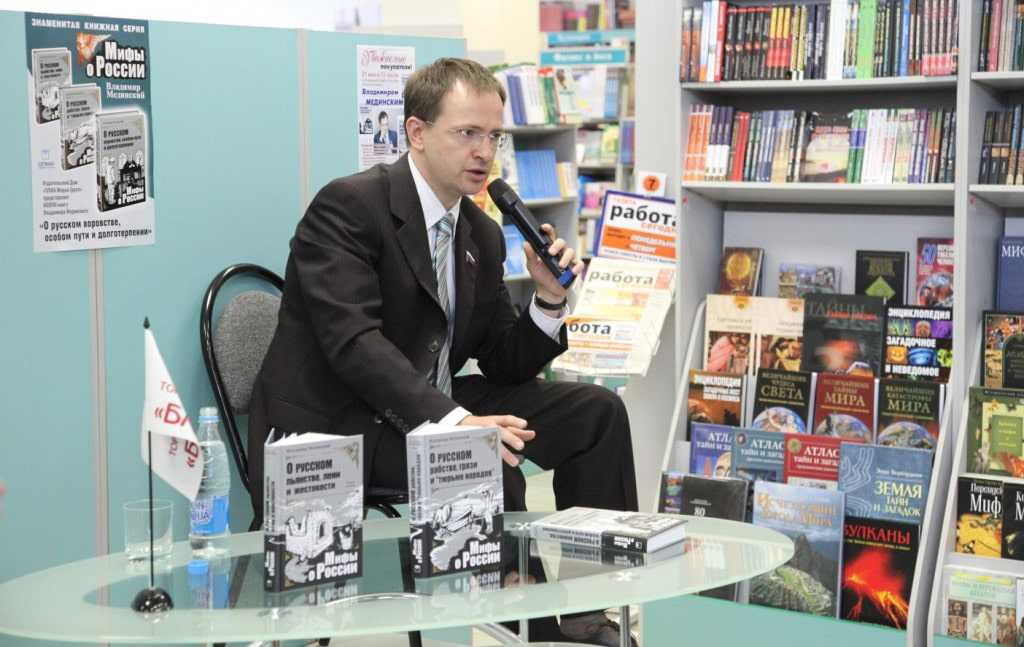 Господин Мединский делает гешефты не только на культуре, поскольку считает себе отнюдь не дельцом, а человеком творческим. Он является дважды доктором наук (политических и исторических), а из-под его пера вышли целых семнадцать книг (часть из них написаны в соавторстве). Самым известным высером Мединского являются «Мифы о России», в которых он попытался опровергнуть наиболее распространенные из оных. Получилось не очень. Книга изобилует историческими ляпами, а то и прямыми передёргиваниями. К тому же слог аффтара излишне кичлив, в результате чего вместо разоблачения «чёрных мифов» получилось создание других, на этот раз «розовых».