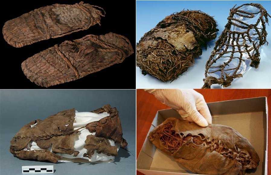 Согласно исследованиям американских археологов первая обувь изготавливалась из растительных материалов: