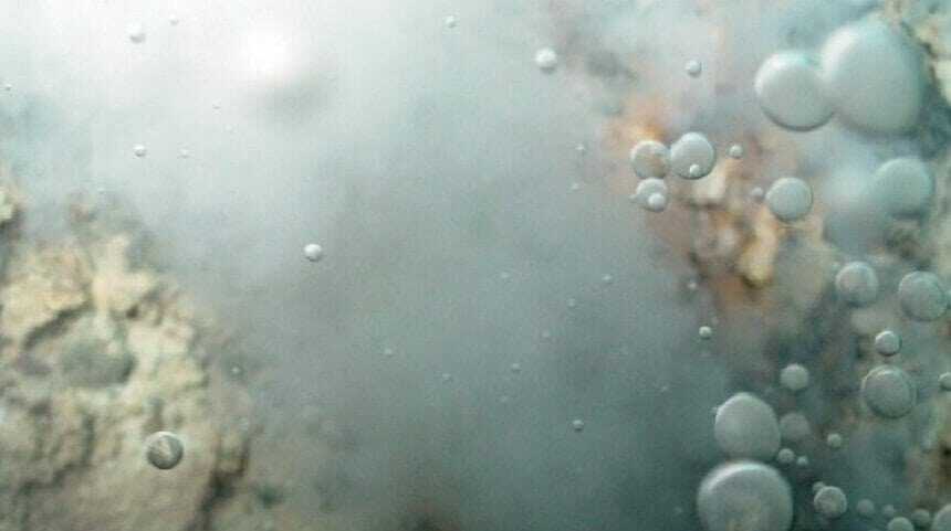 Например, подводный вулкан Эйфуку извергает жидкий углекислый газ из гидротермальных жерл, похожих на дымоходы. Температура жидкости, выходящая из этих труб, составляет 217 градусов по Фаренгейту (103 градуса по Цельсию).