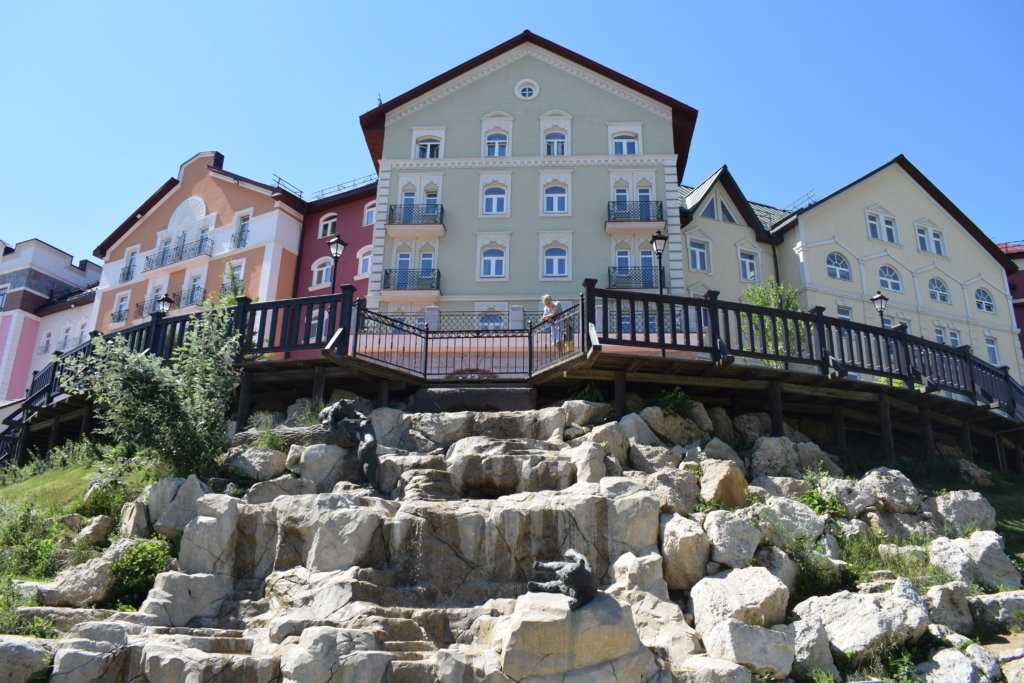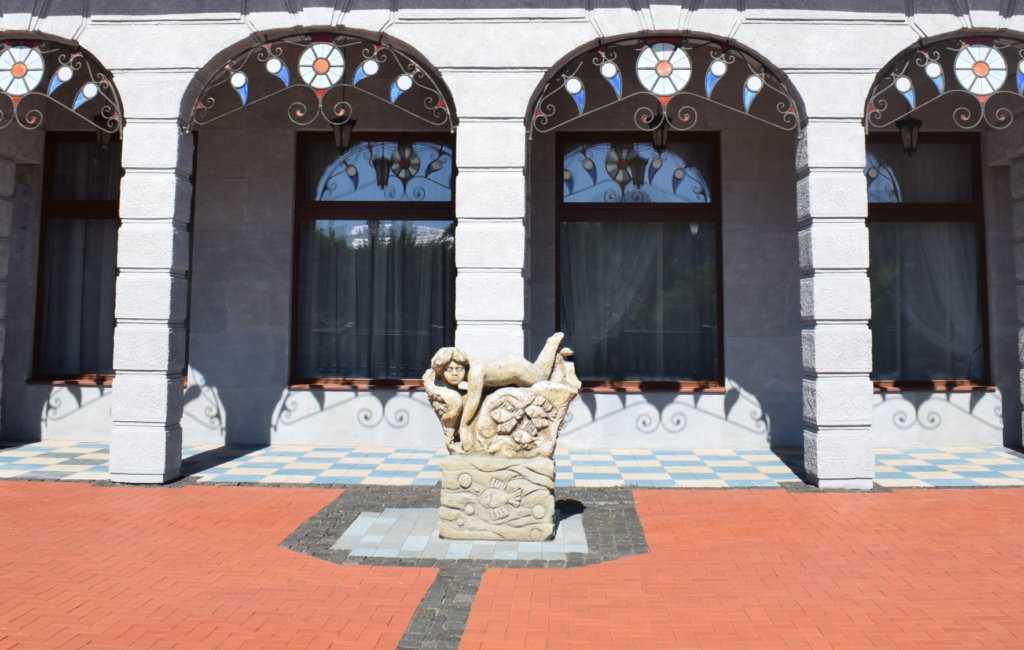 На территории гостиницы и искусственный водопад, и беседка, и старинные часы, и разные фигурки людей и животных. Ну просто — райский уголок не иначе!