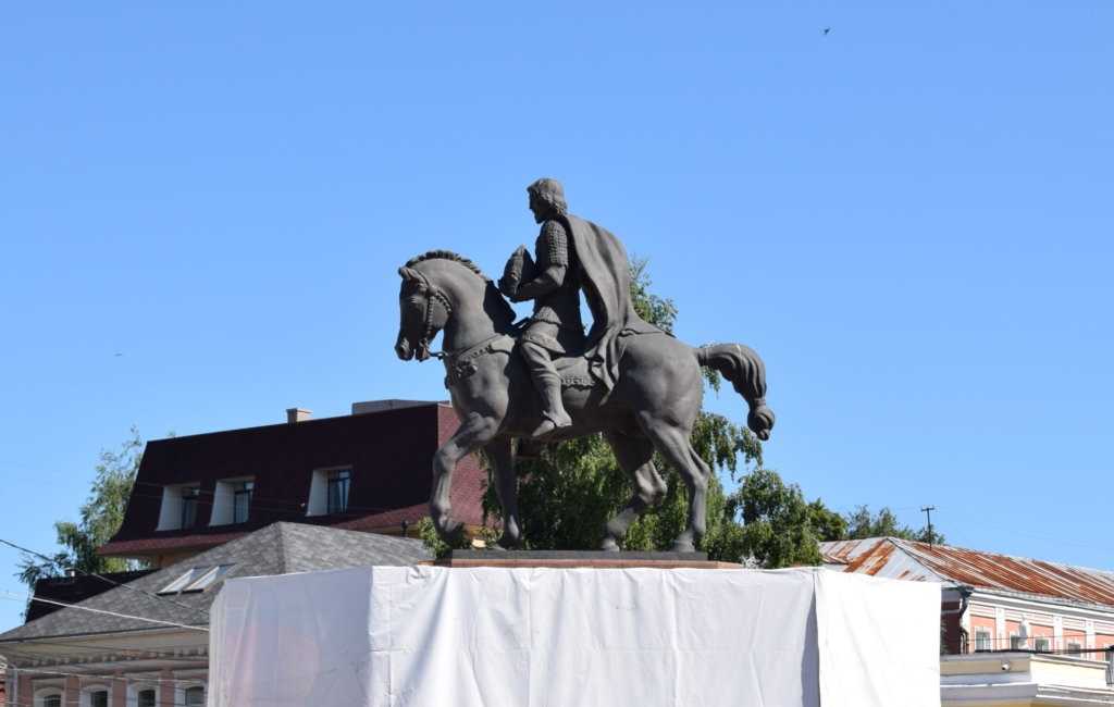 Памятник князю появился на Соборной площади в 2007 году. Как уже говорилось, при Олеге Рязанском Рязань достигла пика своего могущества. Соборная площадь для скульптуры выбрана не случайно. Совсем недалеко от нее находится бывшая княжеская резиденция — Рязанский кремль.
