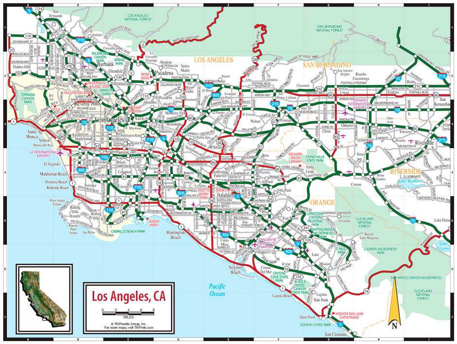 ЛА признан одним из самых загруженных в плане автомобильного трафика городов США. При планировании маршрута лучше закладывать время на стояние в пробках. А чтобы не заблудиться в разветвленной сети улиц и магистралей, советуем взять машину с GPS.