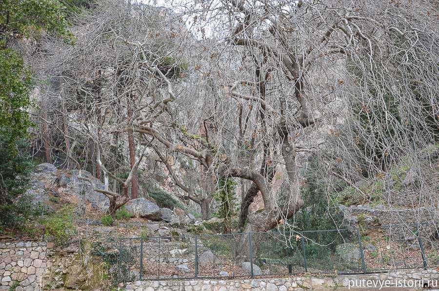 По дороге от святилища Аполлона к святилищу Афины горный склон делает изгиб, и в этом месте с гор стекает ручей, известный как Кастальский ключ.