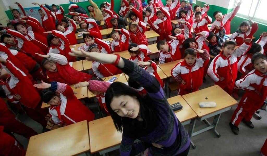 - В современном Китае каждый школьник перед занятиями должен выполнять зарядку, вместе с остальными учениками.