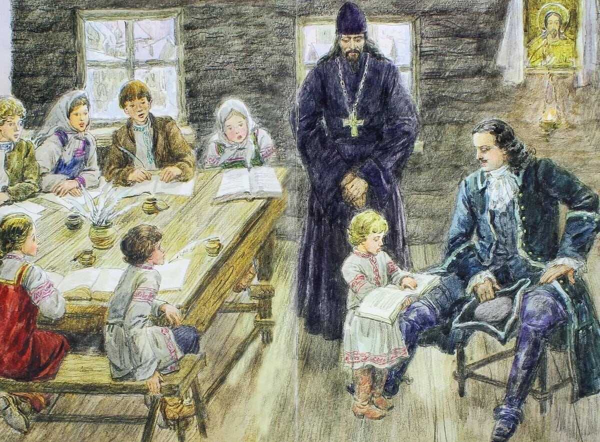 В 1701 году в Москве Петр I открыл Школу математических и навигационных наук для мальчиков 12-20 лет из разных сословий. К тому времени в России было уже много школ, а дети дворян, чиновников в возрасте 10-15 лет должны были учиться в обязательном порядке.
