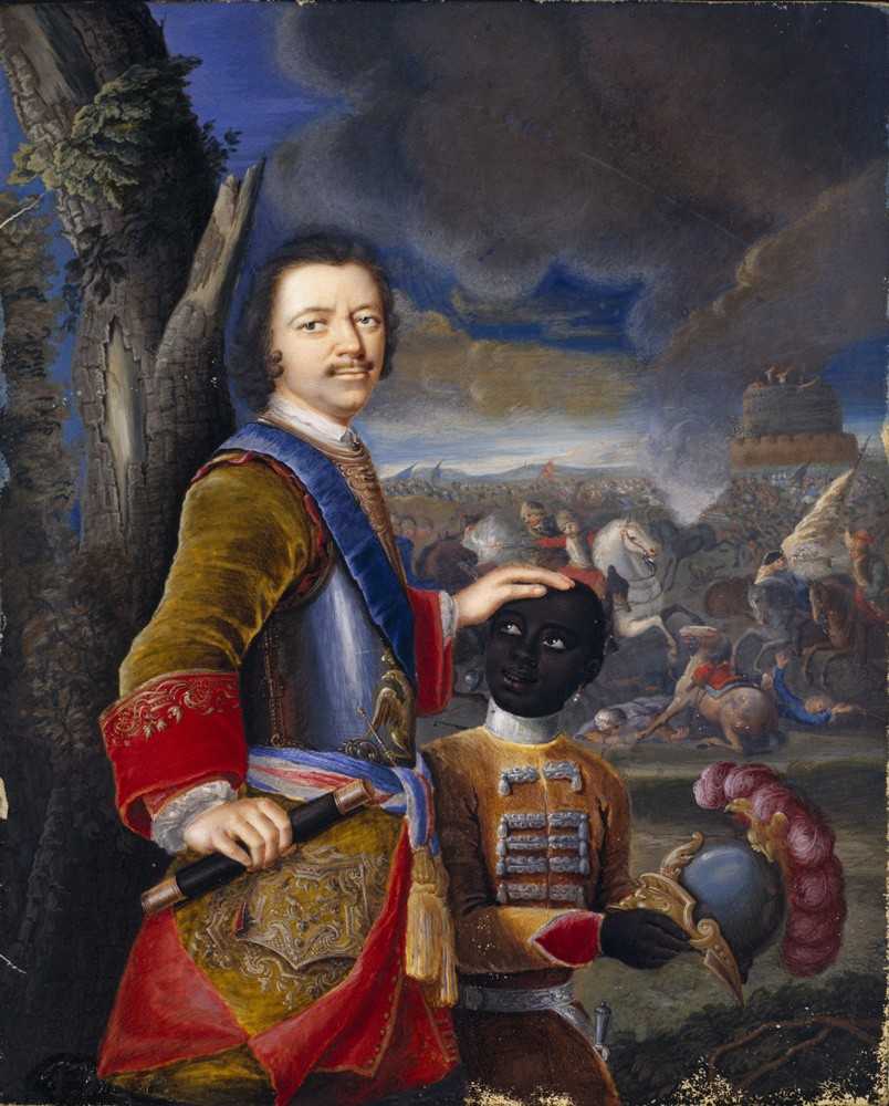 Петр Великий с арапчонком. Акварель Густава фон Мардефельда. Около 1720 года