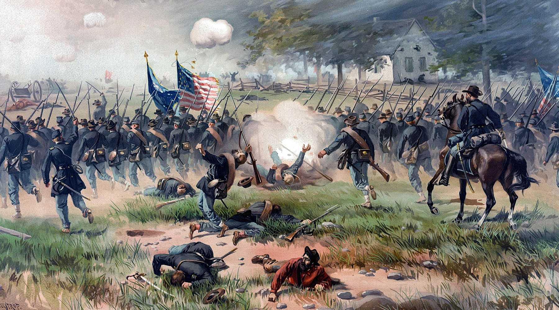 На территории северных штатов была сконцентрирована металлургическая и оружейная промышленность США. Их население составляло около 22 млн человек. В то же время на юге проживали всего 9 млн человек, включая около 4 млн темнокожих рабов. Если северяне смогли призвать в армию 2,7 млн человек, то южане — только 1,1 млн. Представители Юга хотели захватить столицу США Вашингтон, но у них на это не хватило сил. В 1863 году северяне смогли рассечь силы южан на части и перехватить стратегическую инициативу.