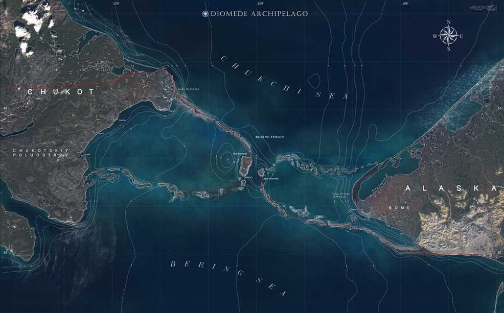 В то же время существуют два острова посреди Берингова пролива, разделяющего Чукотку и Аляску. Между российским островом Ратманова и американским островом Крузенштерна расстояние всего четыре километра. Несмотря на то, что острова находятся в зоне видимости друг от друга, их разделяет существенная разница во времени и государственная граница.