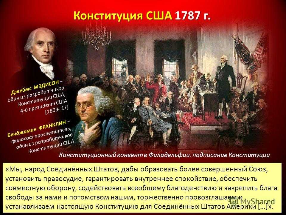 Зато известно, что Мэдисон и его коллеги в создании нового основного закона брали во внимание идеи философов. Получается, то они создавали совершенно инновационный документ
