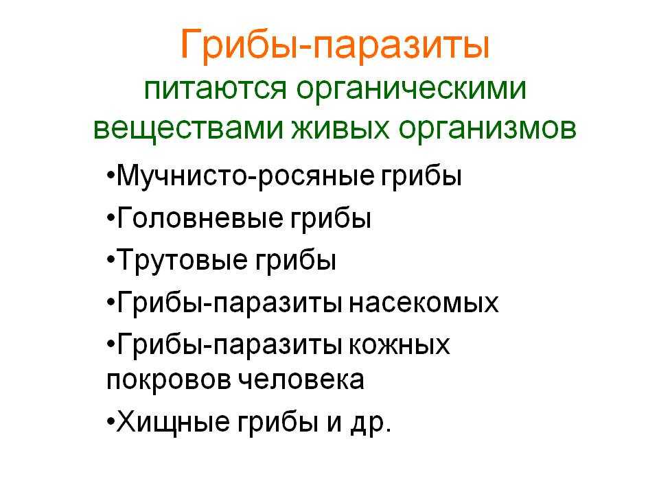 Все грибы, которые являются паразитами, формируются в два определенных вида: