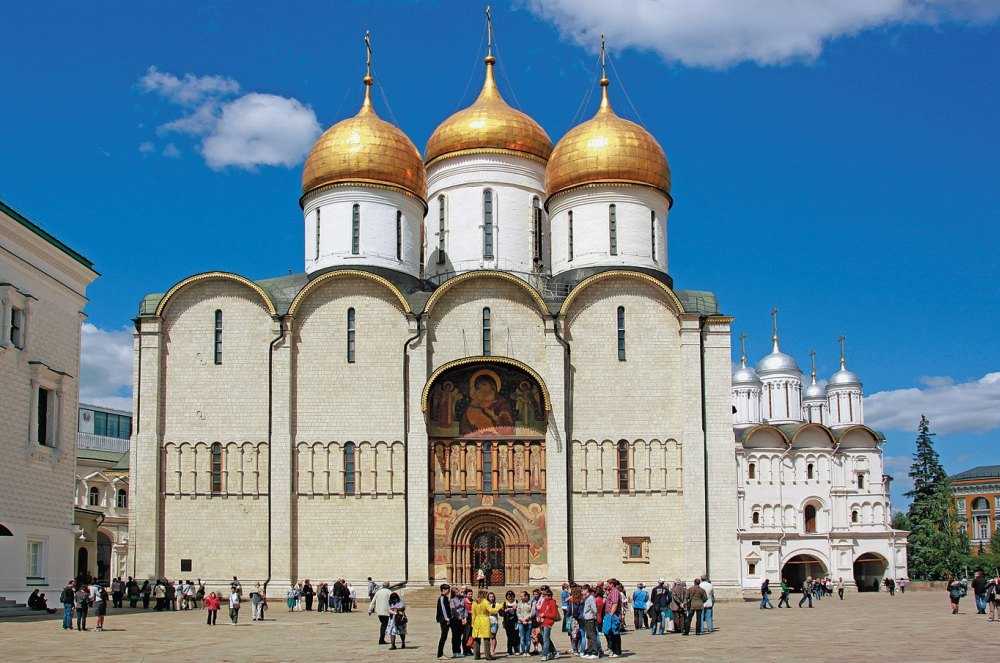 Успенский собор. Относится к древнейшим храмам русской столицы. В 1327 году Иван Калита приказал на месте деревянного собора возвести каменное строение. Именно в этом храме хранятся главные христианские реликвии — Гвоздь Господень и оружие, использовавшееся в казни Иисуса Христа.