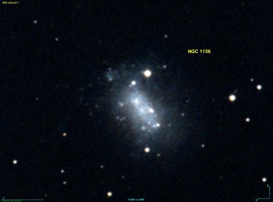 NGC 1156 – карликовая неправильная галактика с видимой величиной 12,3. Это нерегулярная галактика магелланового типа. Расположена к северо-западу от Дельты Овна.