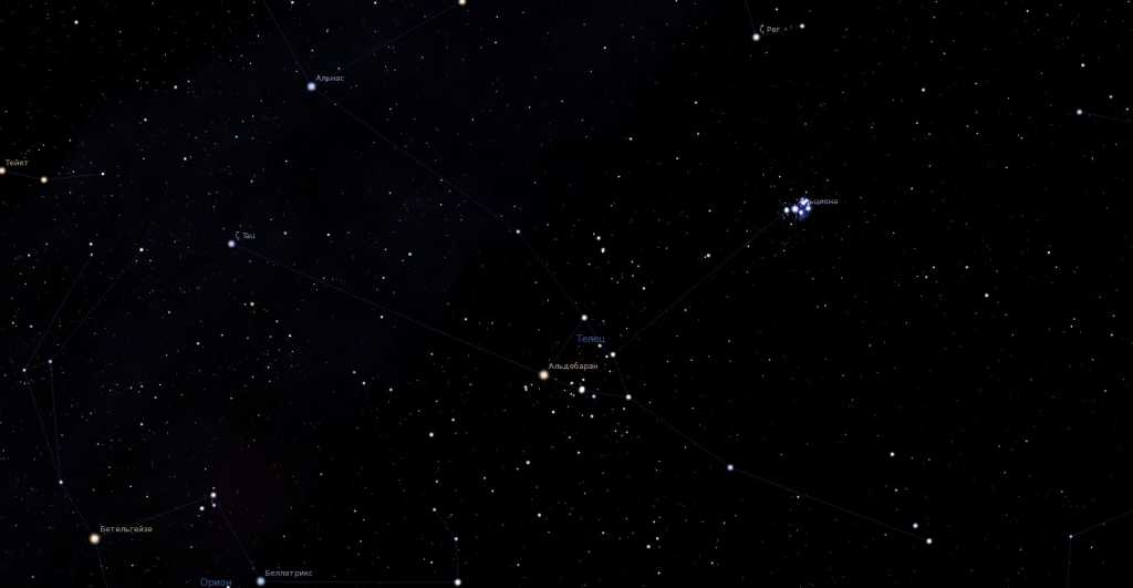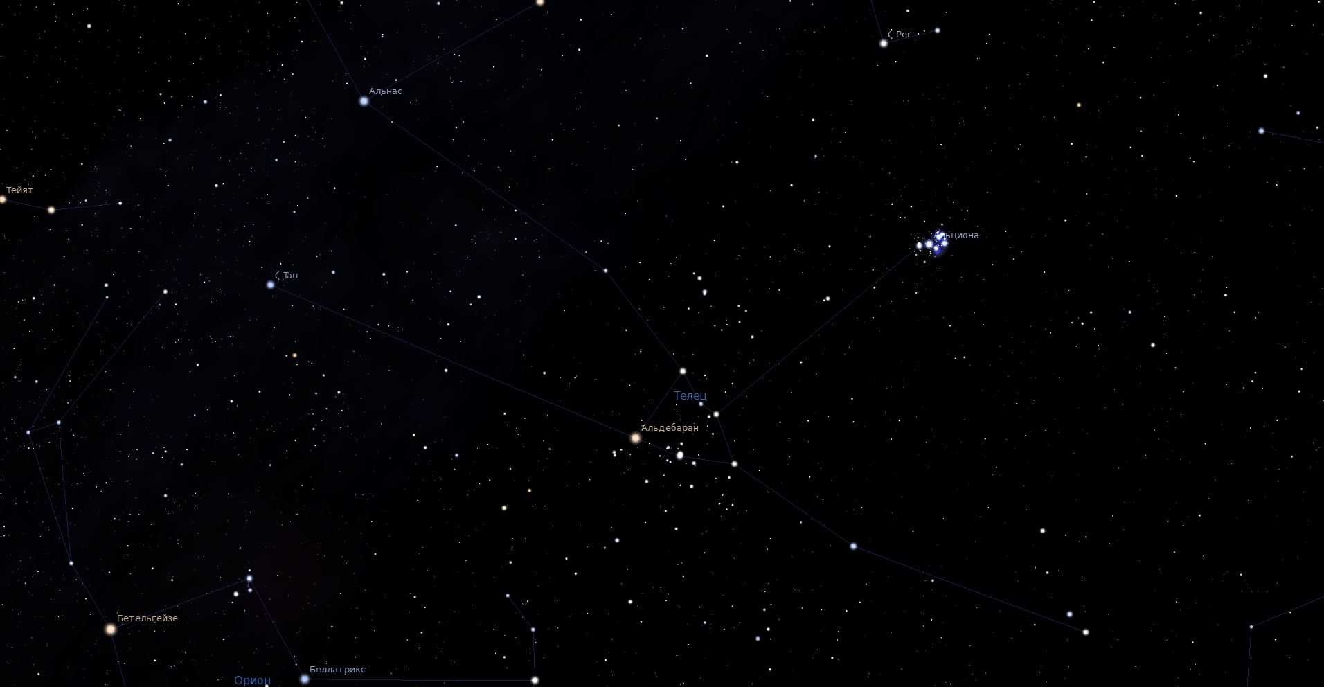Наиболее яркие звёзды: Альдебаран, Эльнат, Альцион
