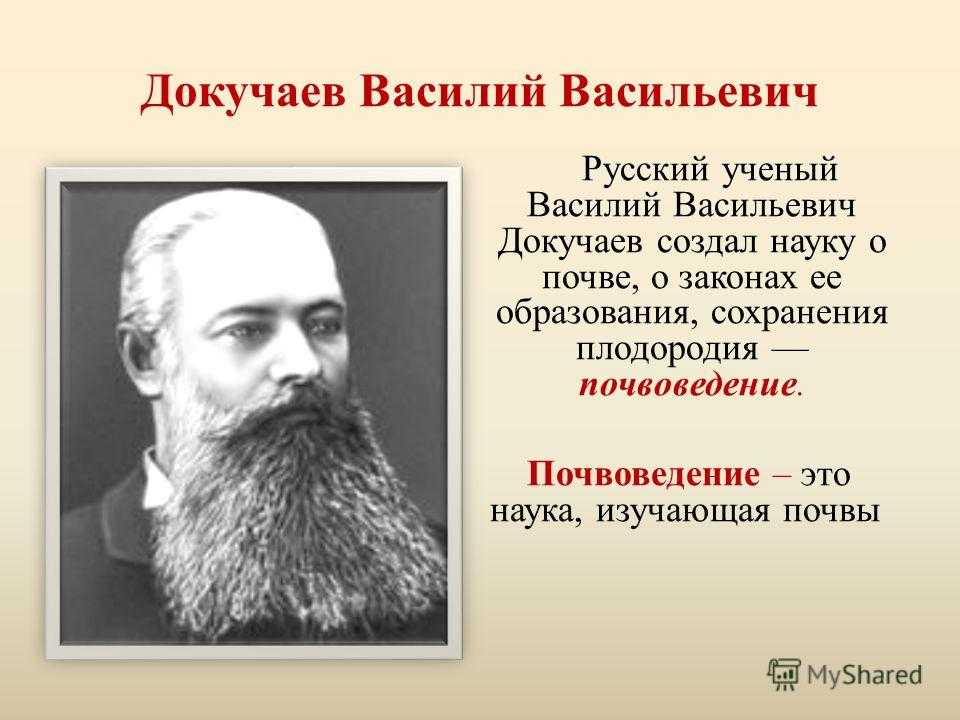 Презентация на тему: » Докучаев Василий Васильевич Русский ученый Василий Васильевич Докучаев создал науку о почве, о законах ее образования, сохранения плодородия почвоведение.» — Транскрипт: