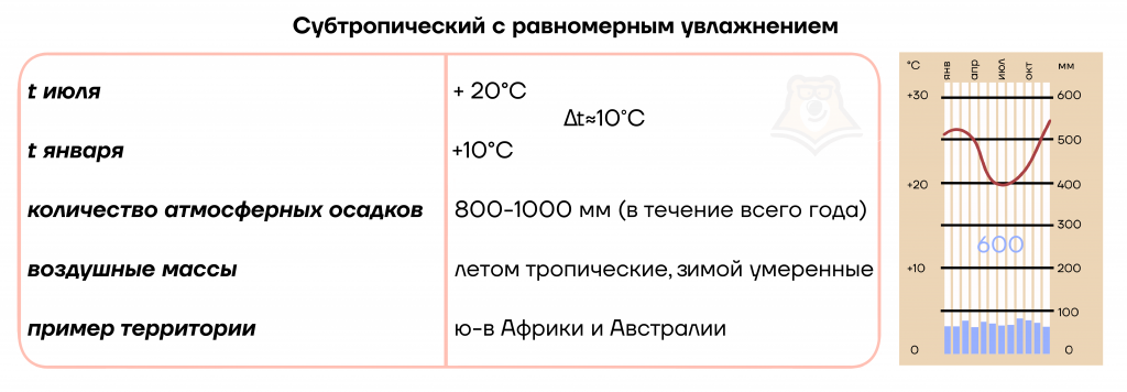 Очень важно, что в этом типе осадки будут выпадать именно летом и в наибольшем количестве среди остальных трёх типов.