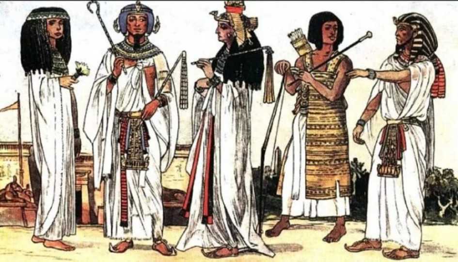 Основной одеждой египтян была обычная набедренная повязка. Но богатые люди, как правило, носили ещё и обувь. А фараонов везде сопровождали носильщики сандалий — была такая специальная должность.