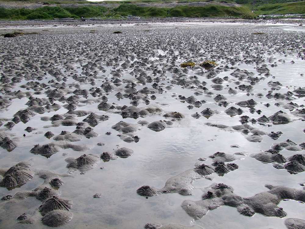 Большинство обитателей прибрежной зоны рискуют быть смытыми прибойной волной. Чтобы избежать этой опасности, они плотно прикрепляются к грунту. Помимо водорослей, ко дну и камням при помощи особых клейких нитей прикрепляются моллюски, например, мидии.