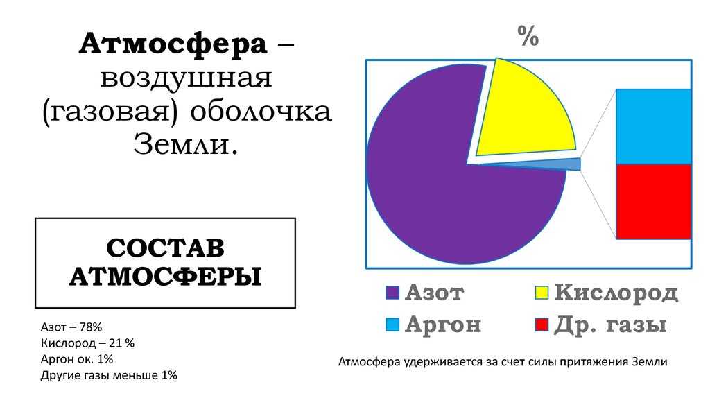 Атмосфера Земли состоит в основном из двух газов — азота (78%) и кислорода (21%). Credit: present5.com.
